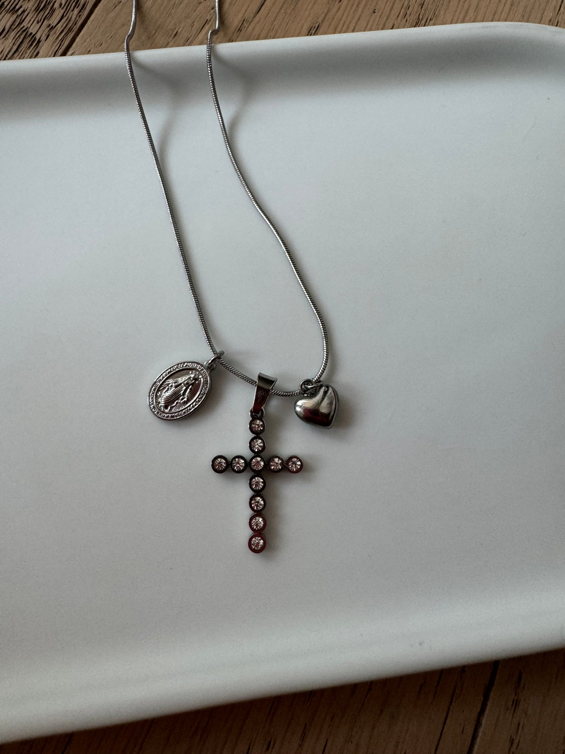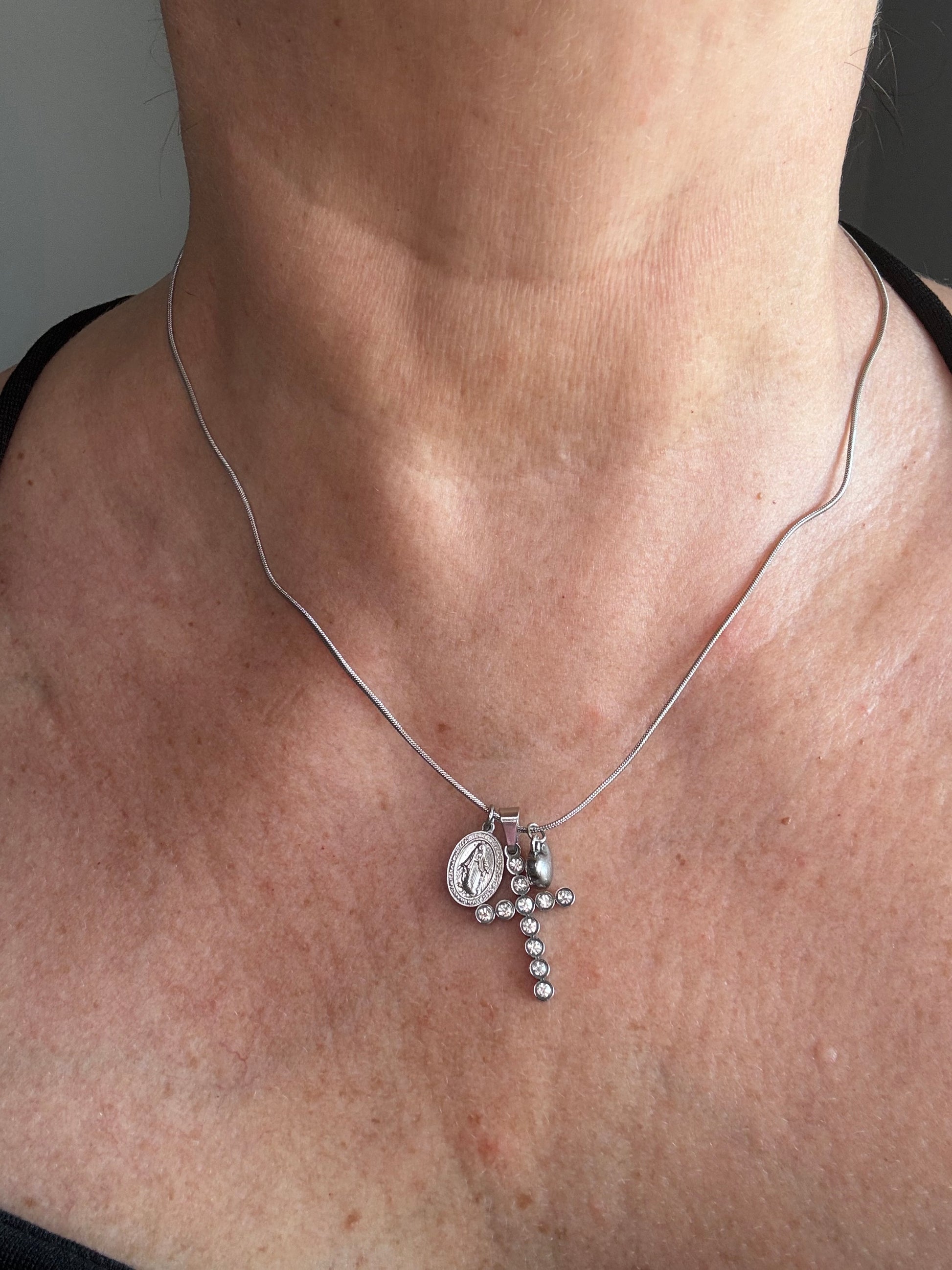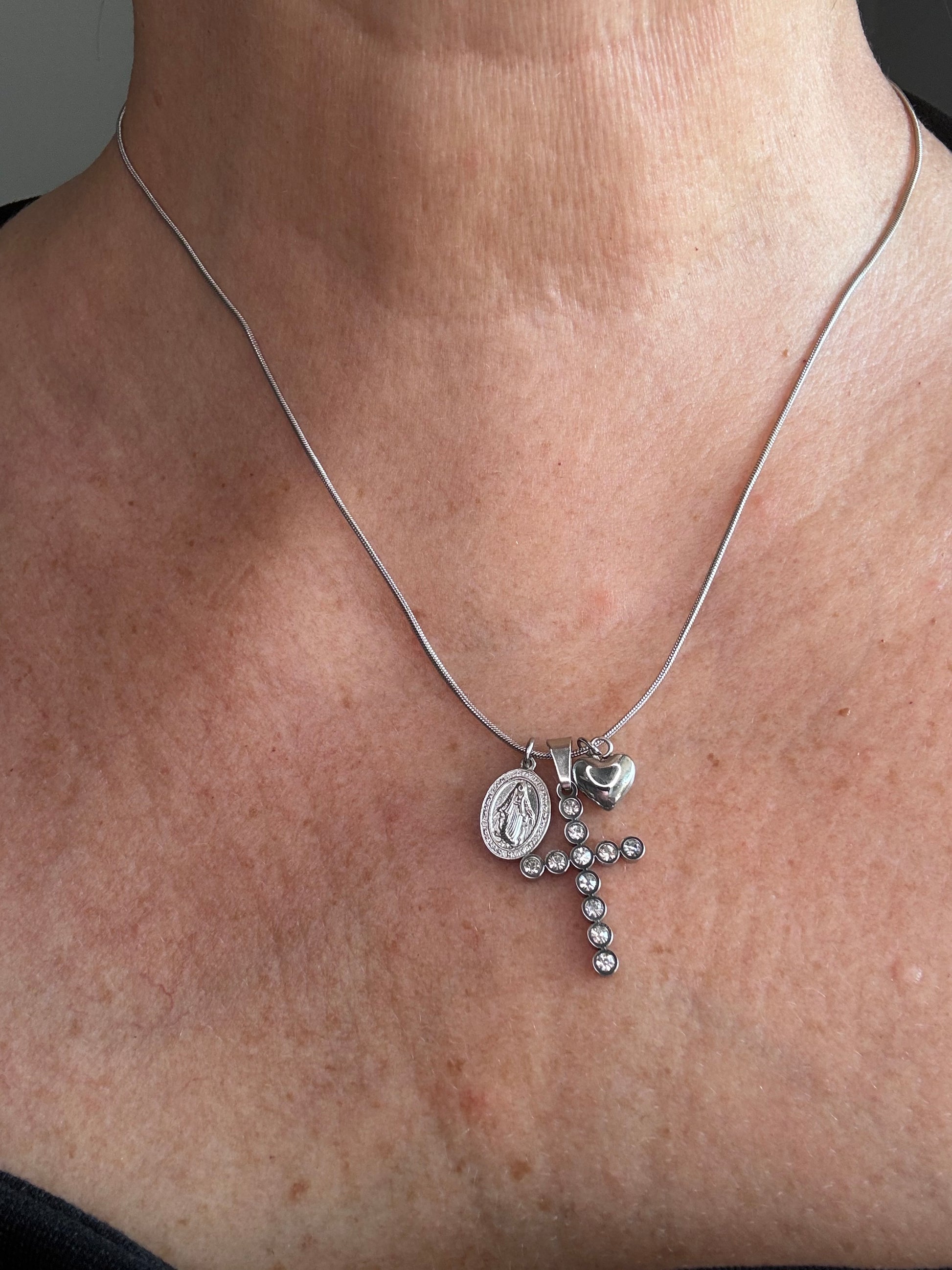 misure: 45cm + croce 3 cm , cuoricino 1 cm , madonnina 1,5 cm